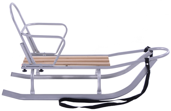 O. Sanki szeroka płoza pionowa z drewnianymi szczeblami, z oparciem szare BezPchacza