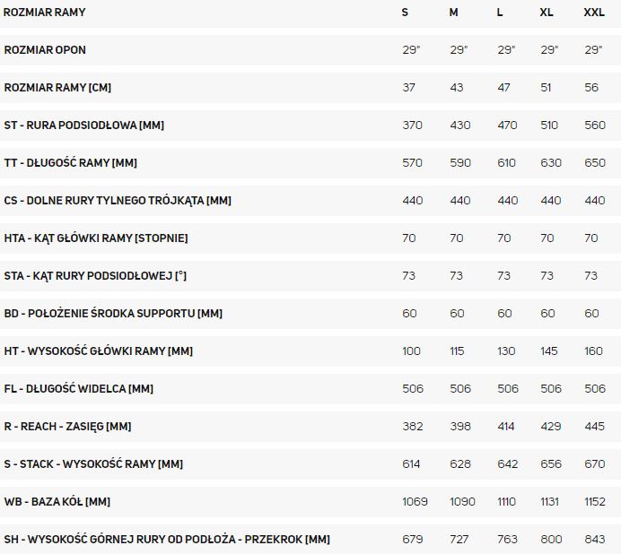 ROZMIAR RAMY S, M, L, XL, XXL