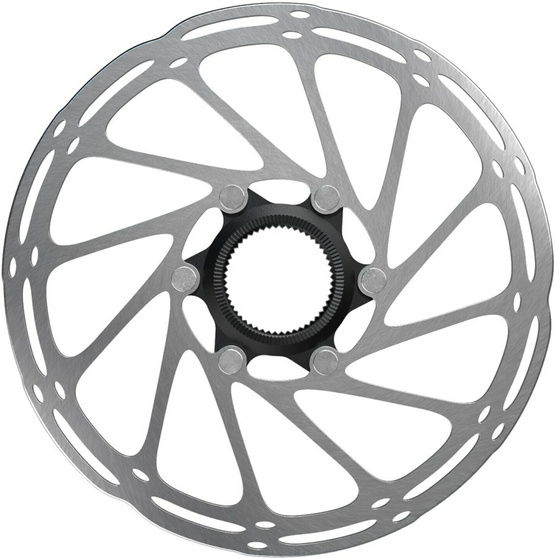 Sram Centerline to tarcza hamulcowa oferująca znakomite osiągi. Dopracowany kształt cechuje się dobrą sztywnością, dzięki czemu tarcza nie ociera o zacisk w zakrętach. Powierzchnia tarcia została zaprojektowana tak, aby siła hamowania była równomierna. Odpowiednia ilość materiału pozwoliła na dobre odprowadzanie ciepła i zniwelowanie spadku wydajności wynikającego z przegrzania. Zaokrąglone krawędzie ułatwiają trafienie tarczą w zacisk podczas montażu koła. Montaż na 6 śrub, które znajdują się w zestawie. Sram Centerline to tarcza hamulcowa o wysokiej efektywności w każdych warunkach.